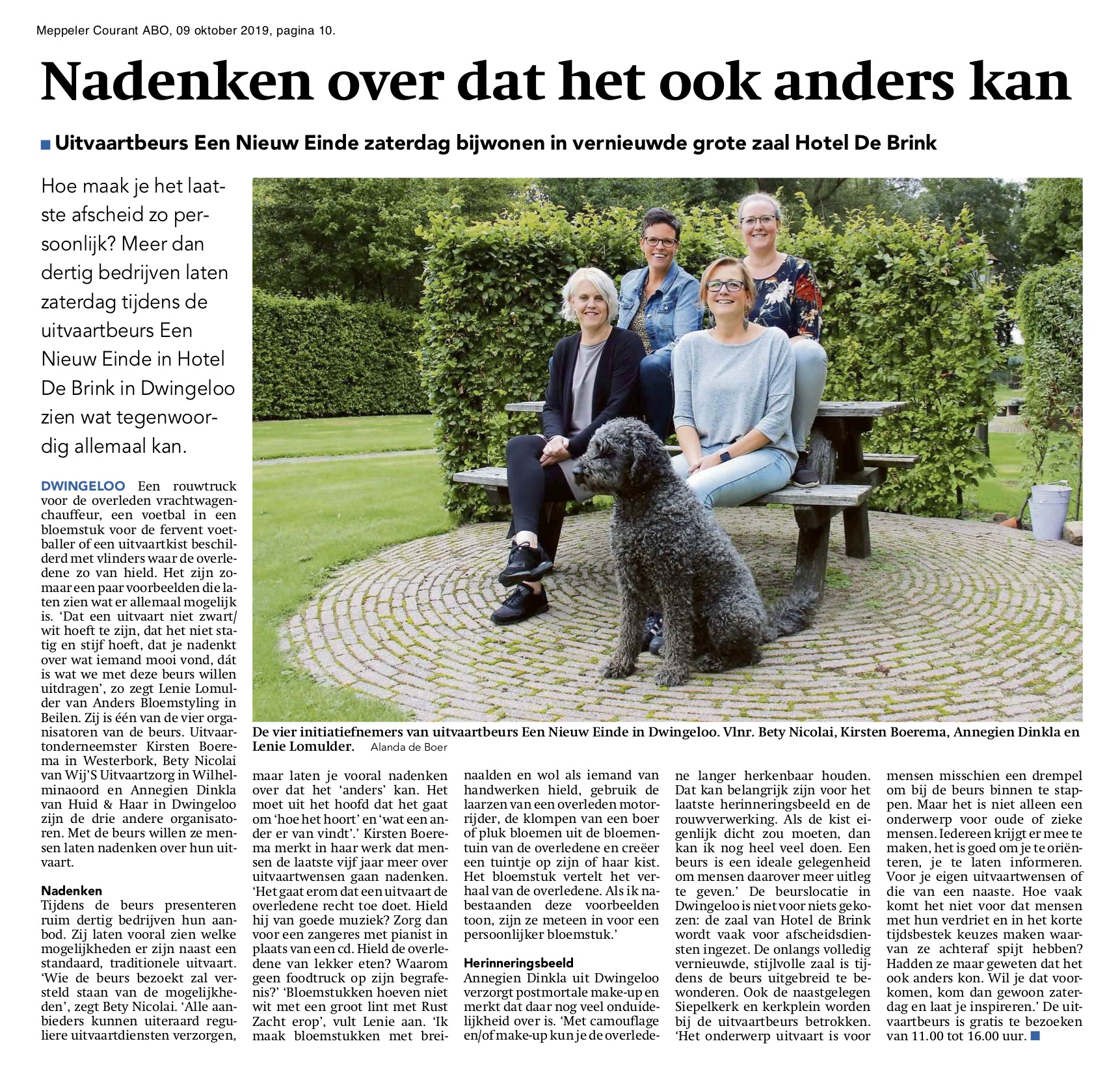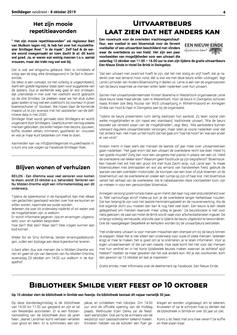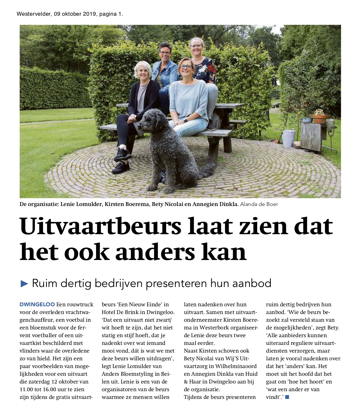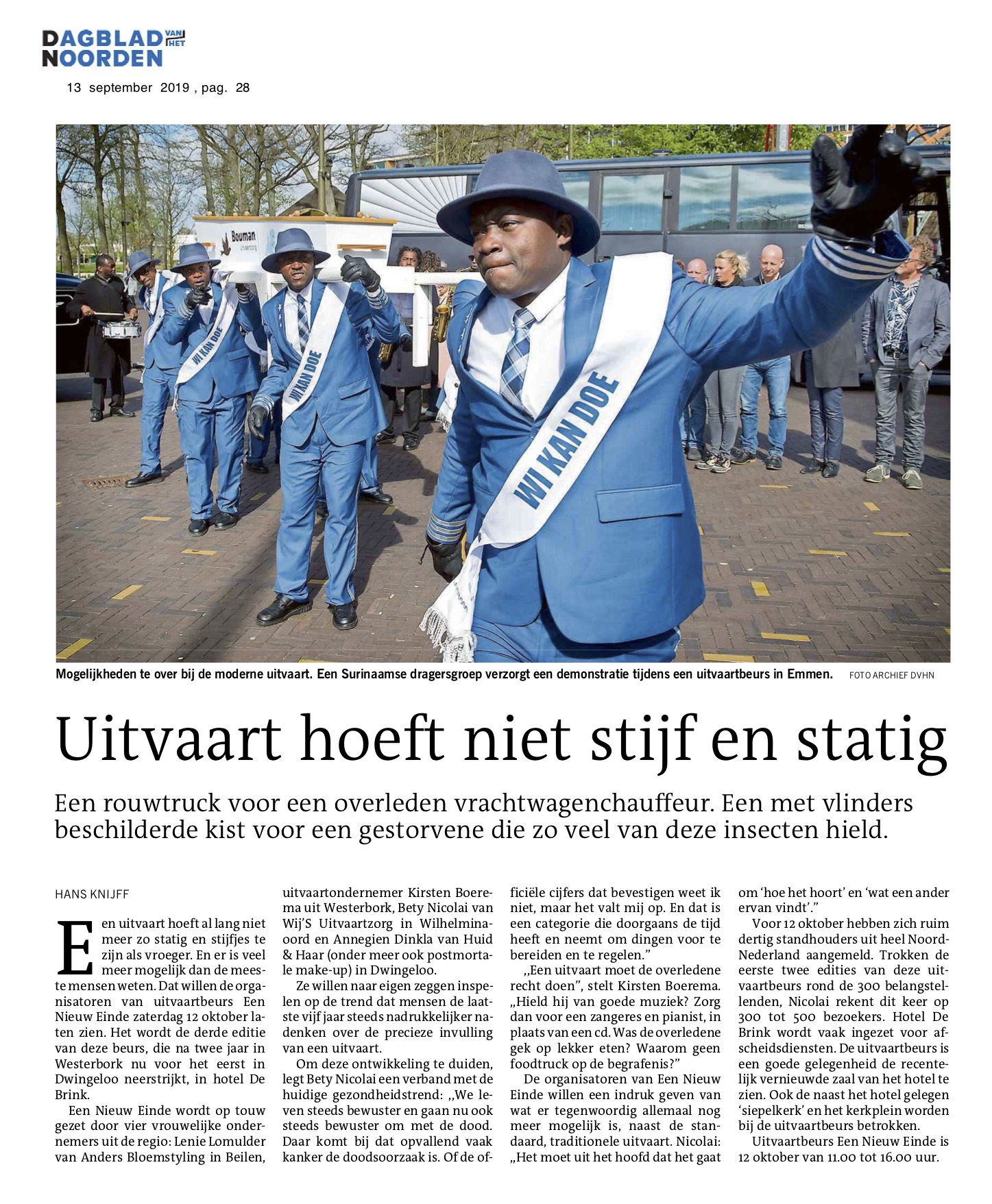 Een aantal ondernemers die actief zijn in de uitvaartbranche organiseerden een uitvaartbeurs in Dwingeloo. Ze vroegen mij hiervoor persaandacht te genereren. Ik maakte persfoto’s en schreef een persbericht dat ik verstuurde aan de regionale pers. Het werd zowel offline als online goed opgepakt.